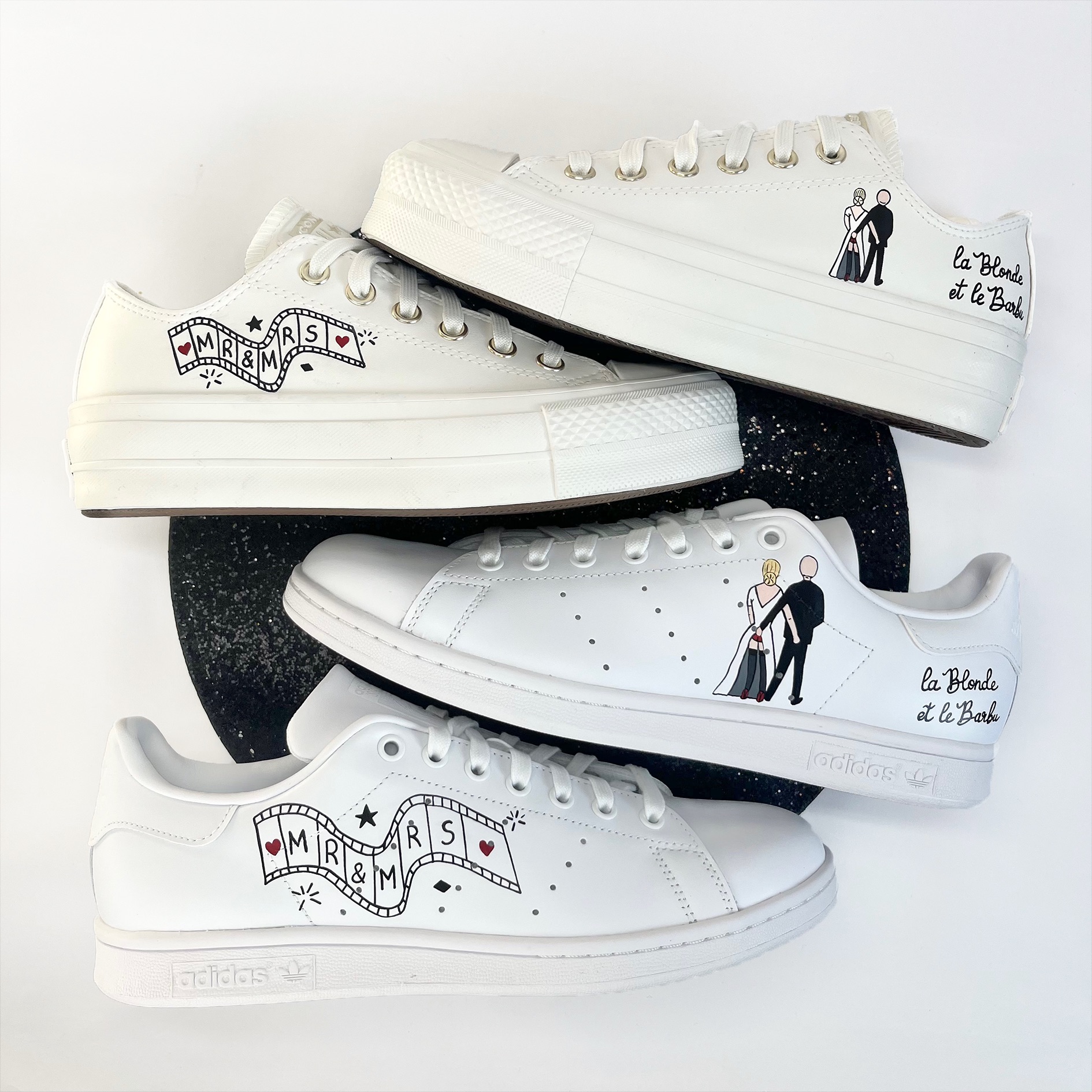 En Octobre 2022, j’ai contacté Karine Le Marchand afin d’obtenir sa pointure et lui offrir une jolie paire de Stan Smith personnalisées sur le thème de mon émission préférée :