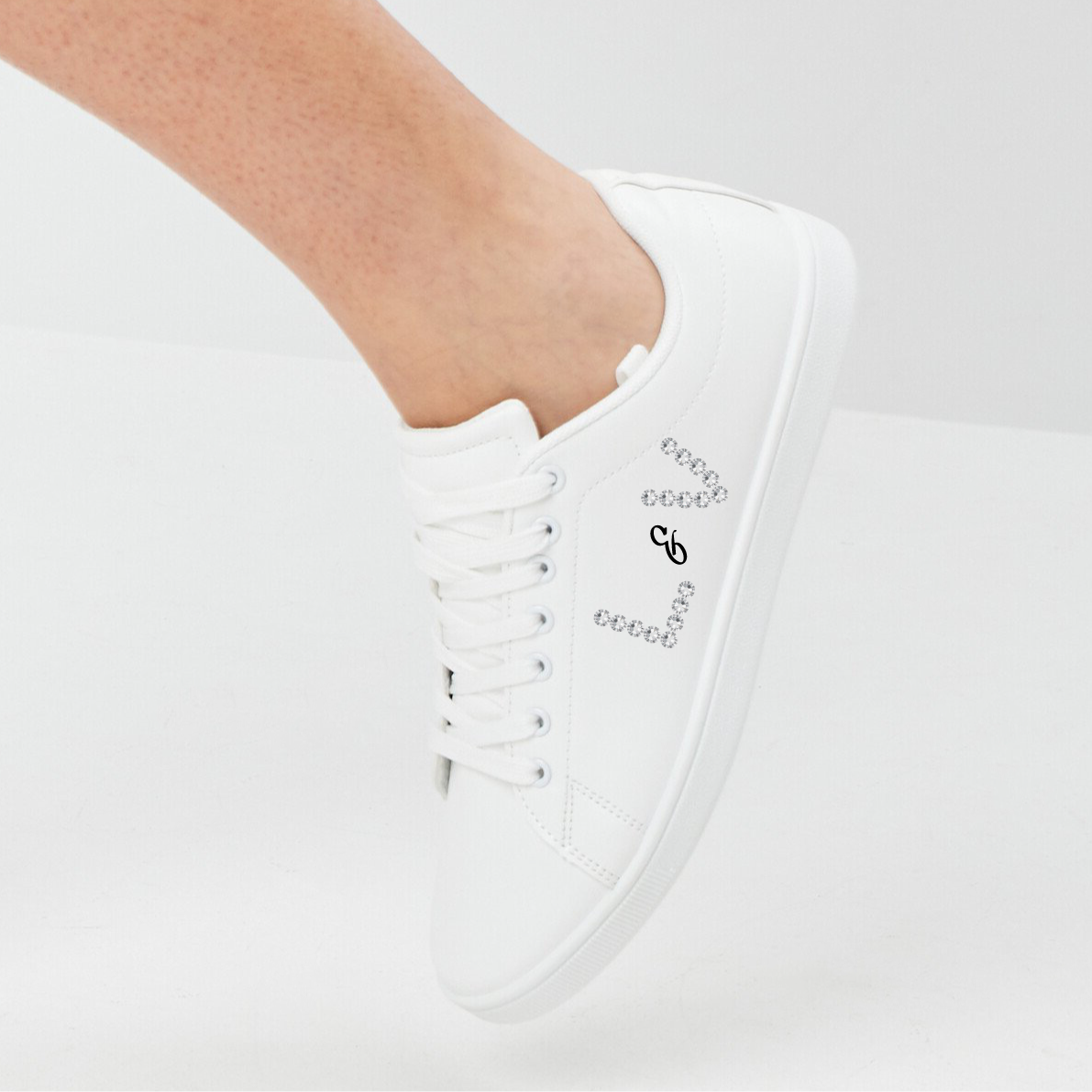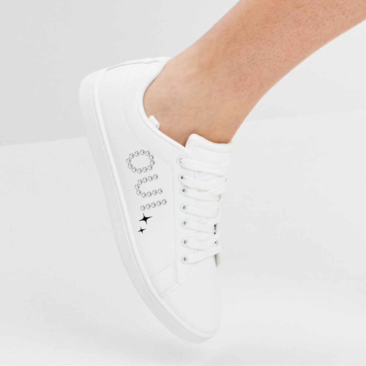 – Chaussure gauche : inscription de vos initiales en strass + étoiles
