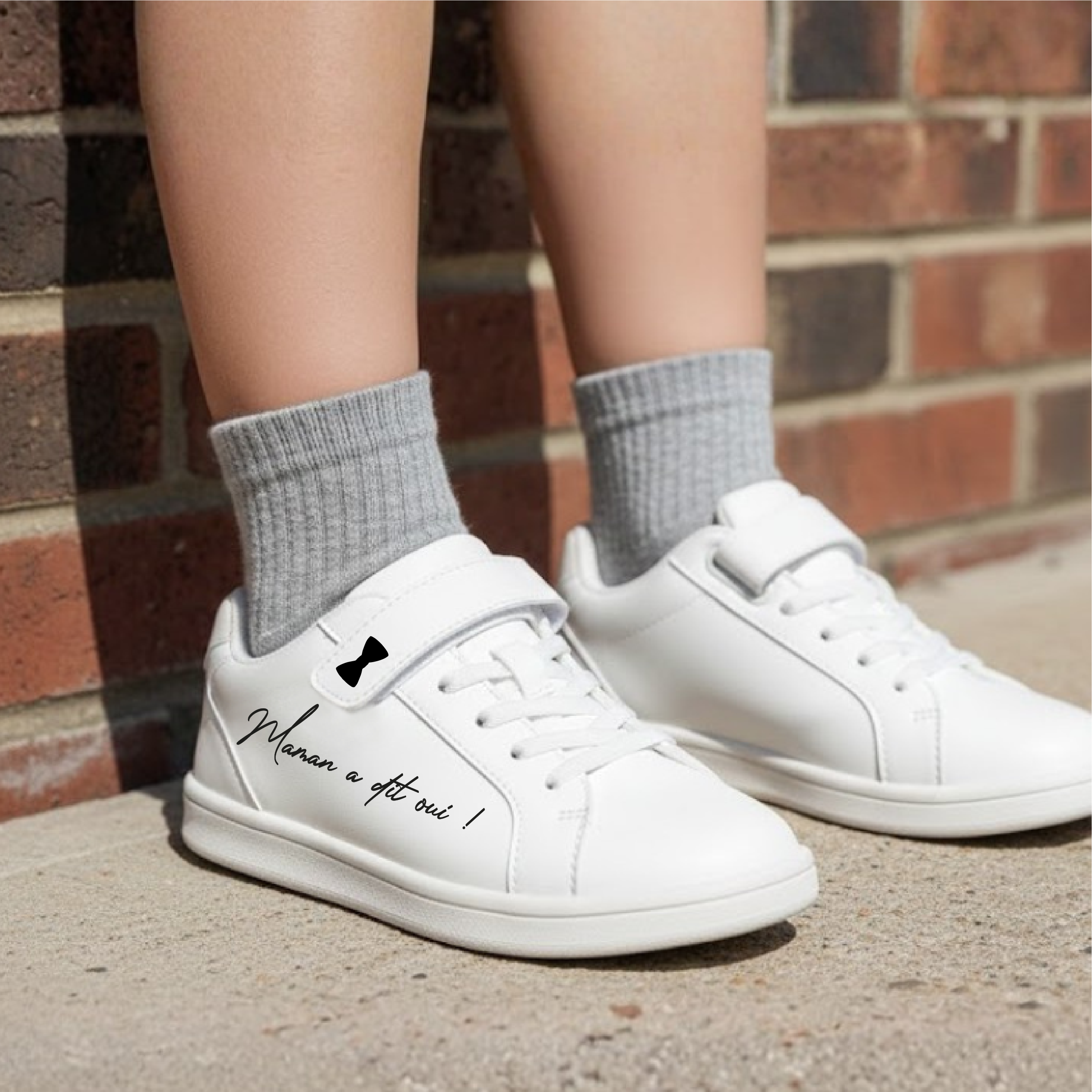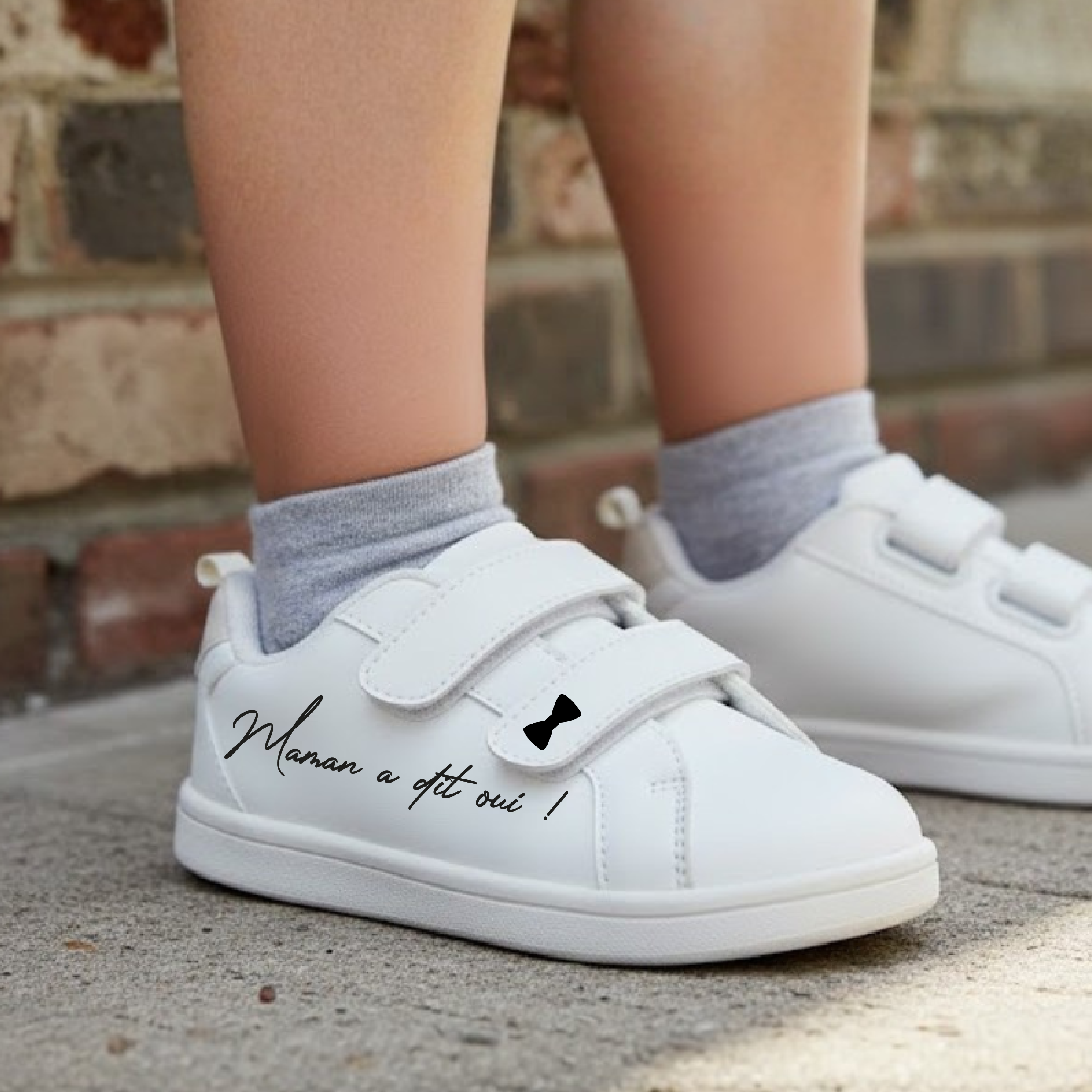 – Chaussure droite : « Maman a dit oui ! » + agrément sur un scratch