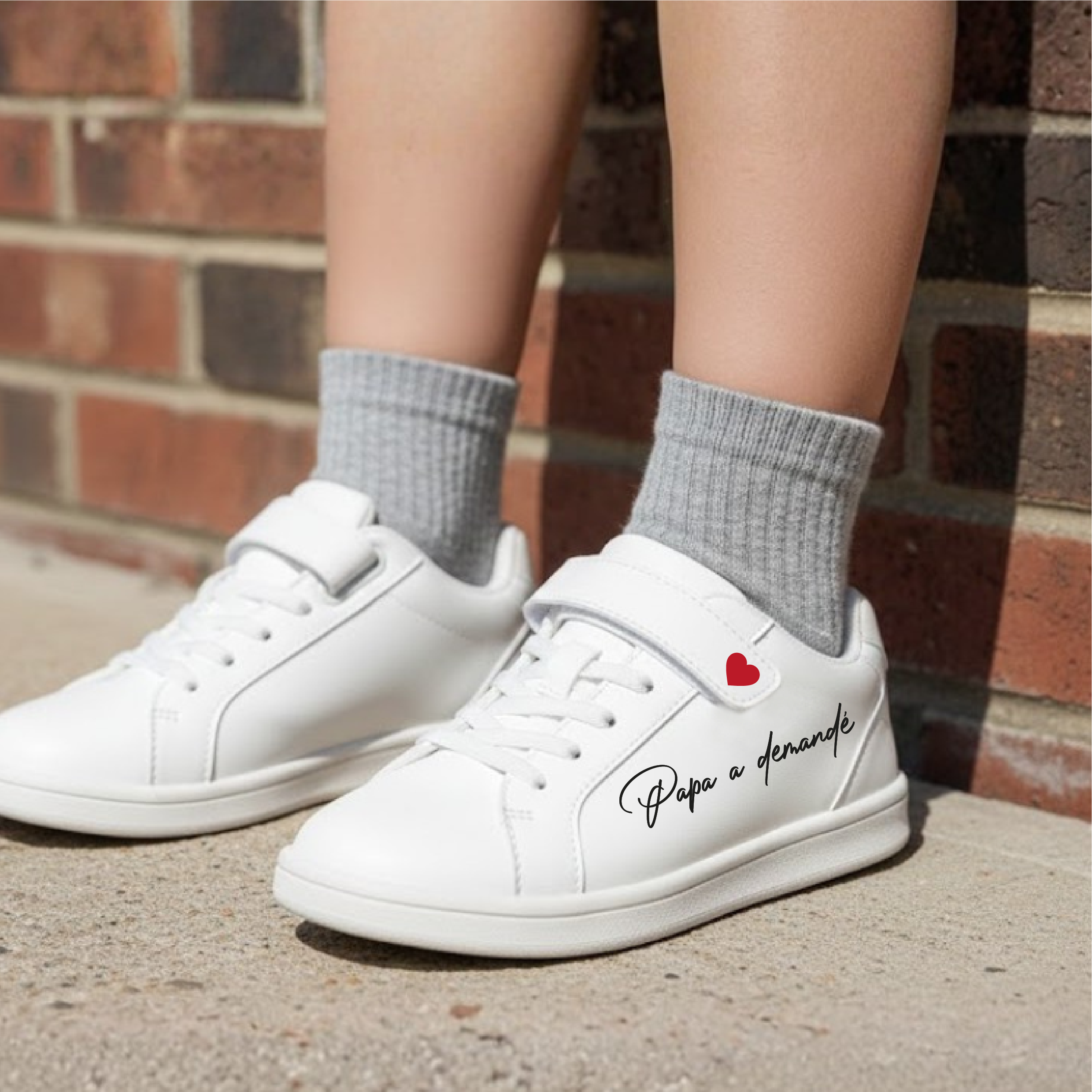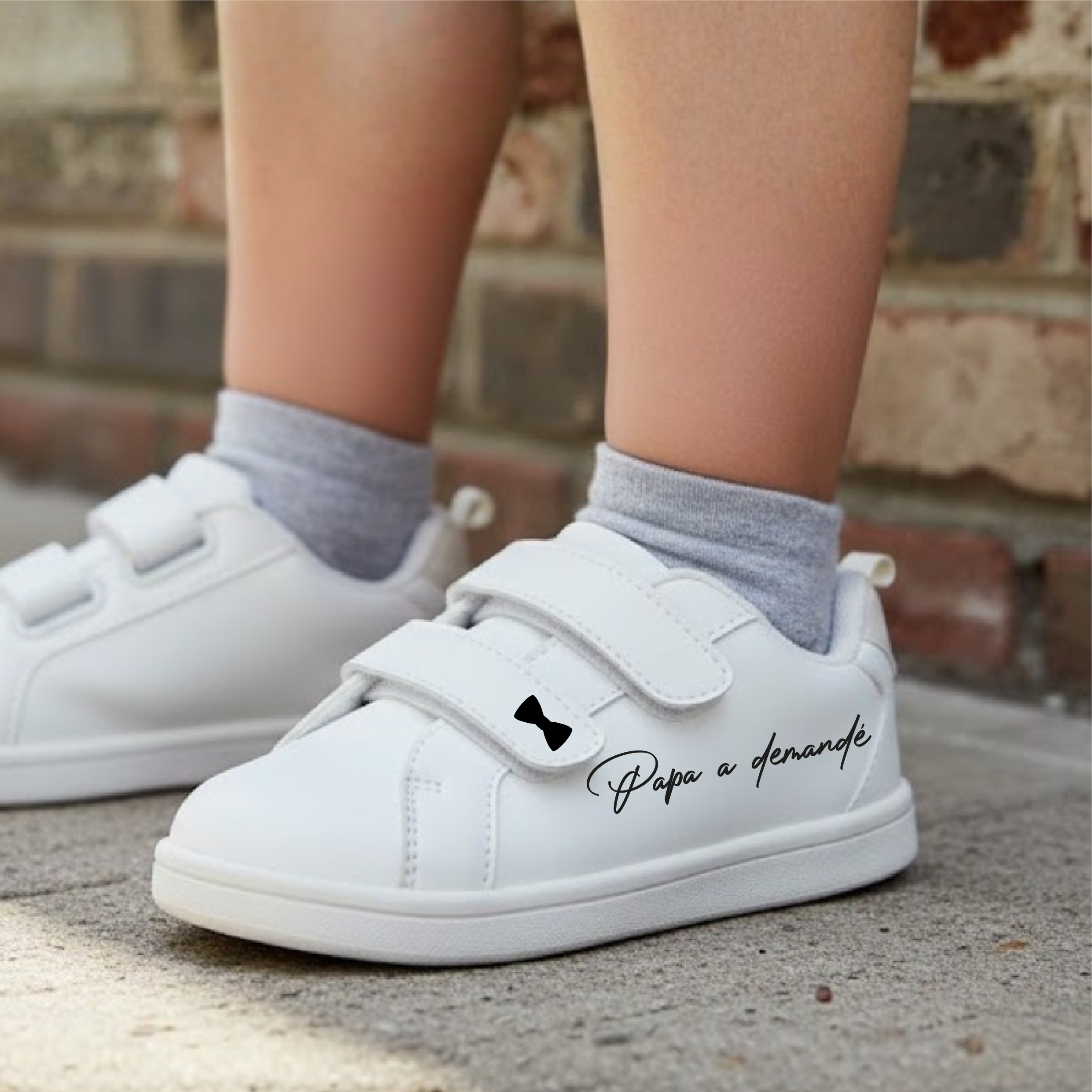 – Chaussure gauche : « Papa a demandé » + agrément sur un scratch